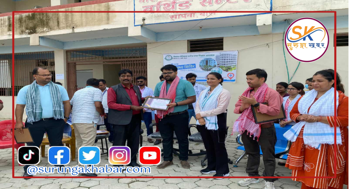 सुरुङ्गा खबर , सप्तरी। नेशनल मेडिकल कलेज तथा शिक्षण अस्पताल, बीरगंजको आयोजनामा र बारागढी गाउँपालिका, खोपवाको सहकार्यमा आज एक दिवसीय निःशुल्क स्वास्थ्य परीक्षण तथा रक्तदान कार्यक्रम सम्पन्न भएको छ।
